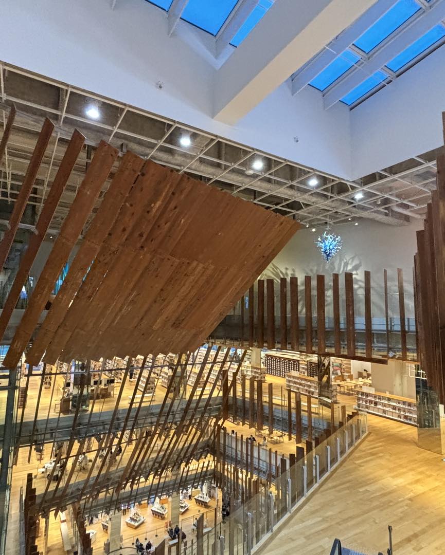 市図書館本館も入居した複合施設で、隈研吾氏が設計を手掛けた建物です。