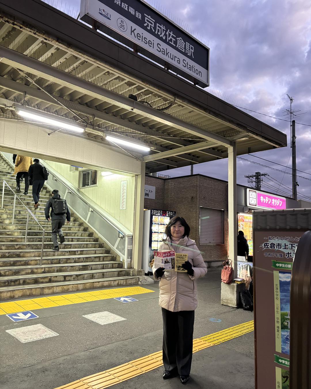 - 12/19(金) 京成佐倉駅で奥野総一郎衆議院議員と早朝駅頭に立ち、県議会報告を配布。