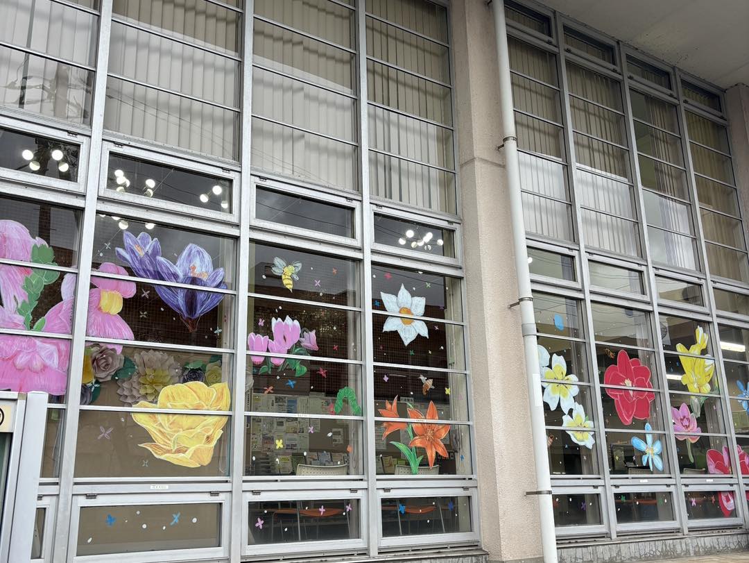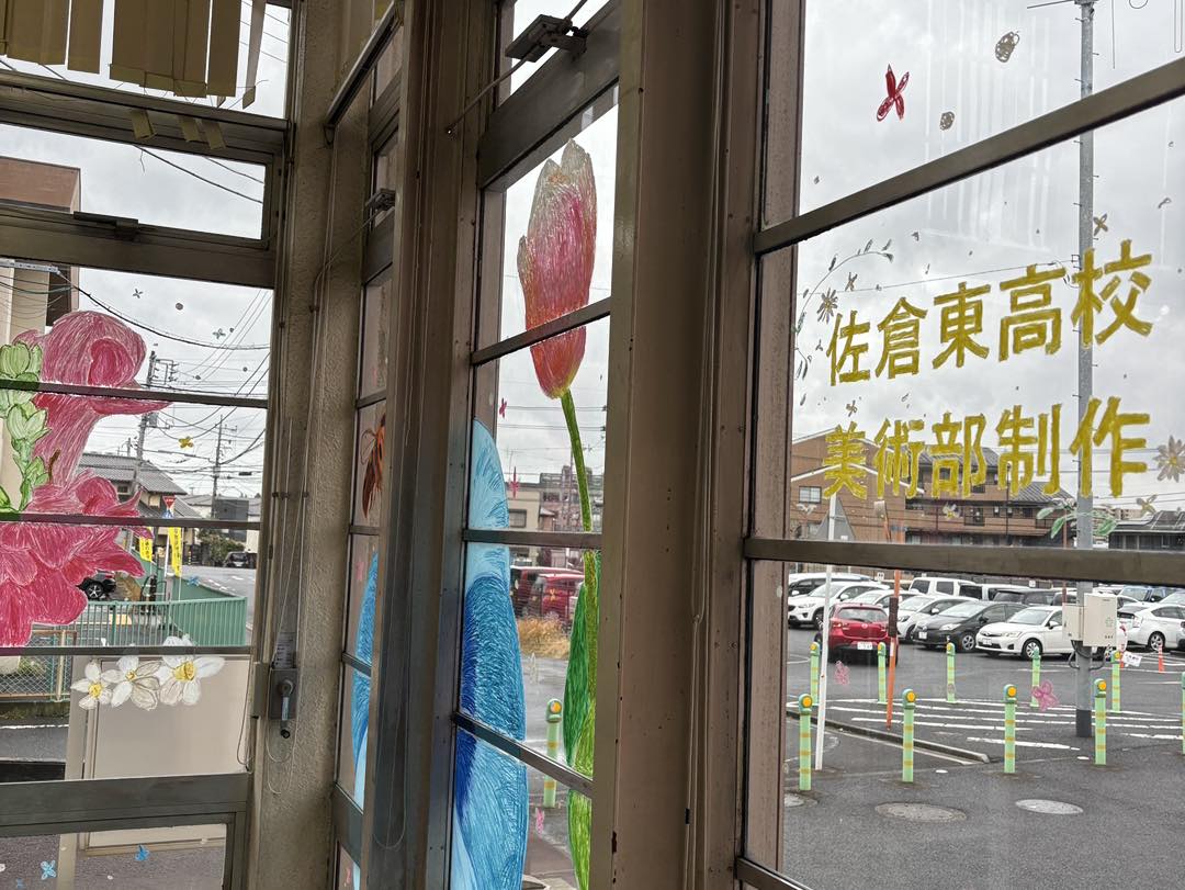 佐倉東高校美術部により、カラフルな花々が描かれています。