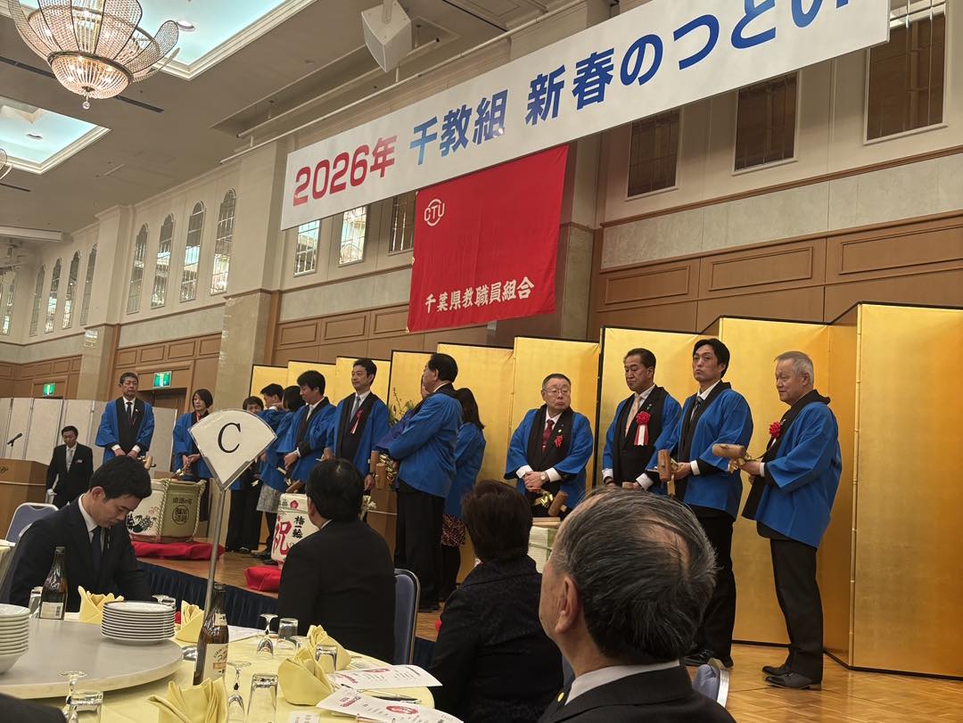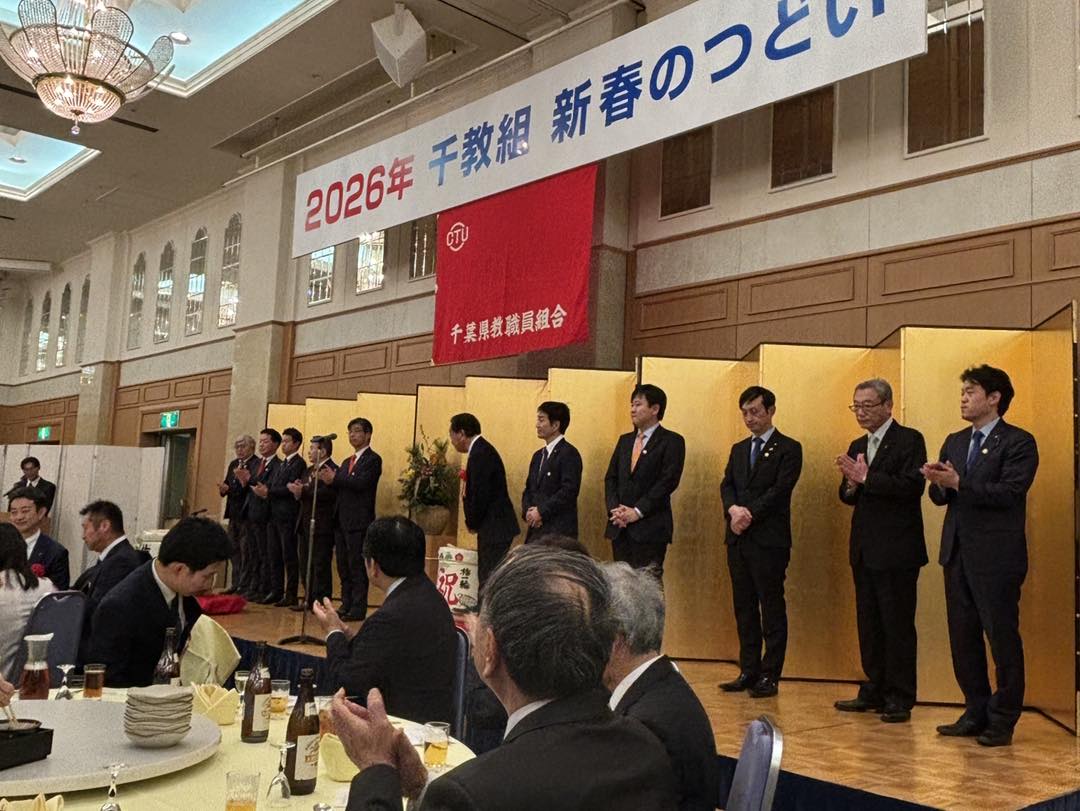 14時半からは、千葉ポートプラザホテルで開かれた千葉県教職員組合の新春のつどいへ。