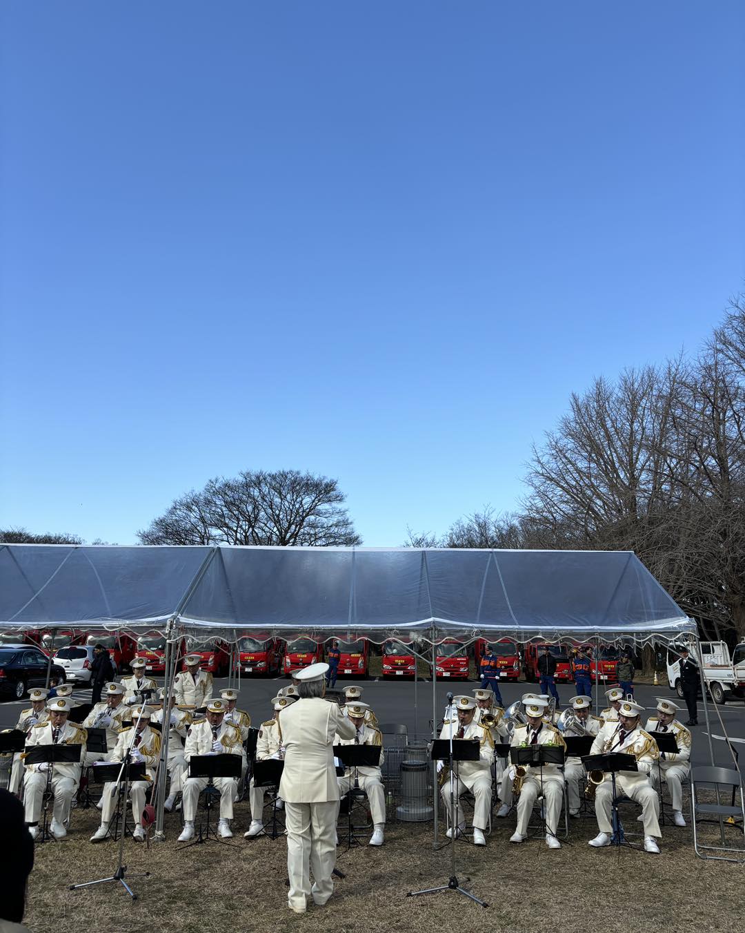 強風でしたが、消防組合音楽隊の演奏が流れる中、颯爽とした分列行進や車両行進にギャラリーの子どもたちも釘づけでした。
