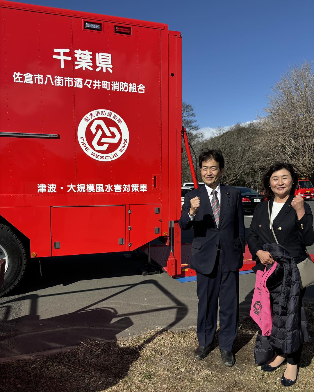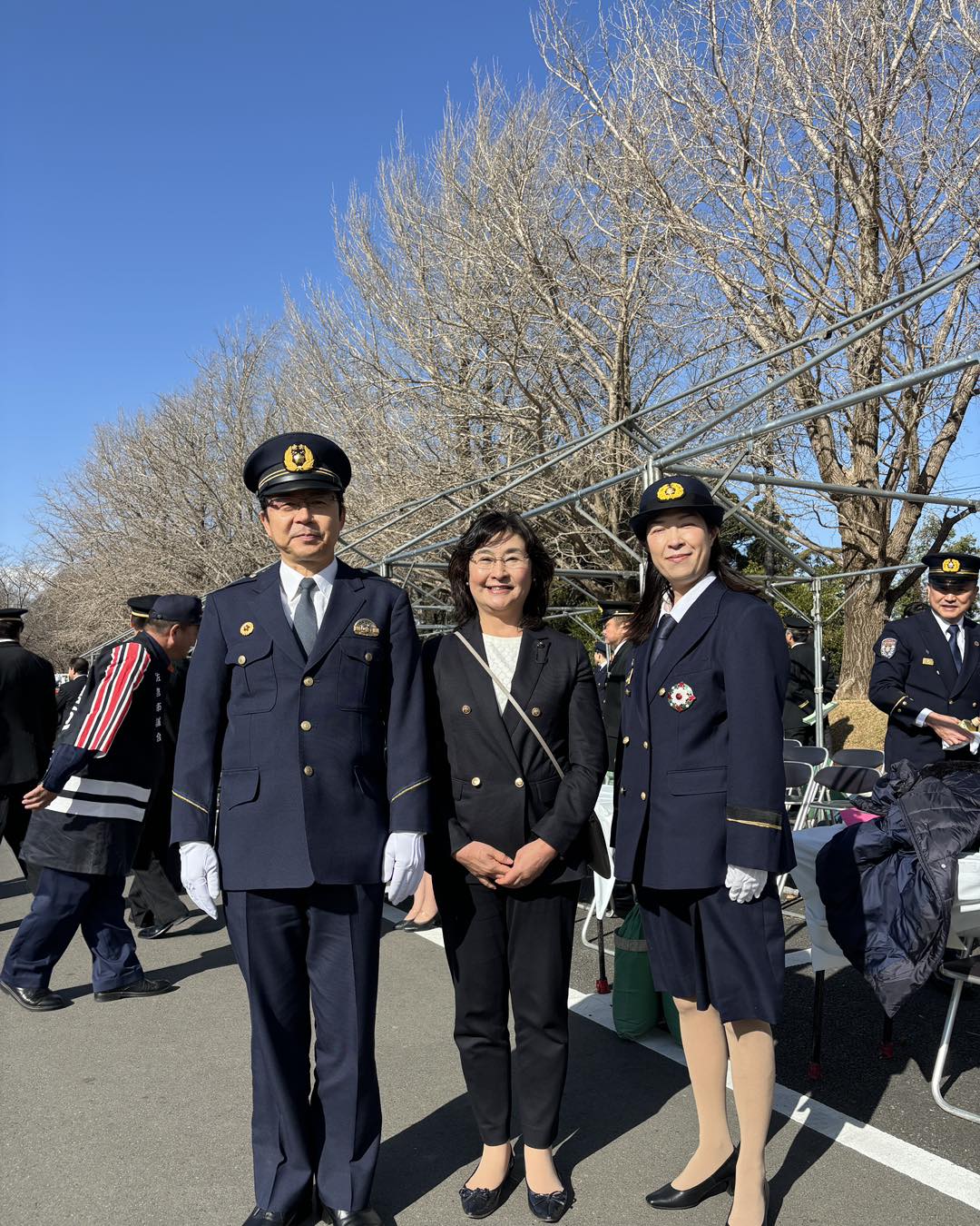 西田市長、飯島消防団長、堀佐倉警察署長、飯島印旛振興事務所長とご一緒に写真。