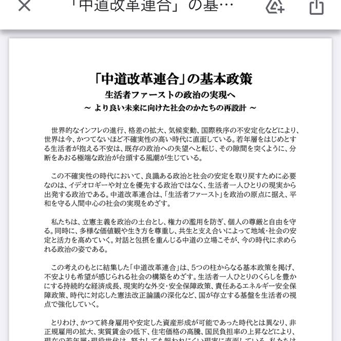 本日、解散総選挙に向けて、新党「中道改革連合」の綱領と基本政策が発表されました。