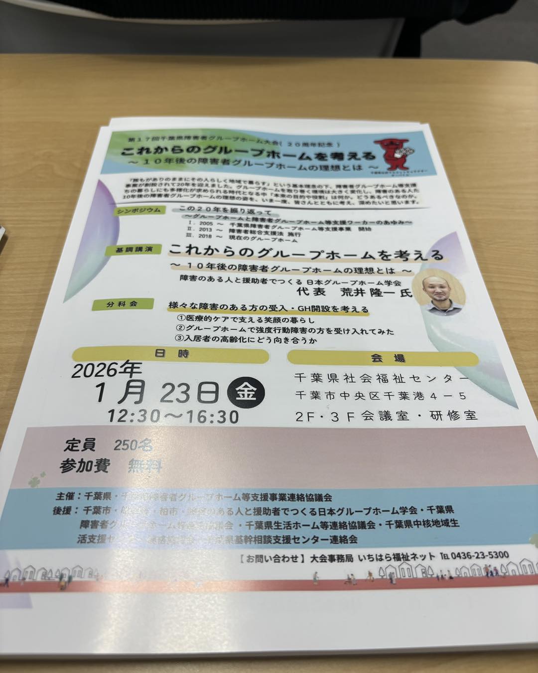 12時半からは、千葉県社会福祉センターで開かれた障害者グループホーム大会に参加しました。