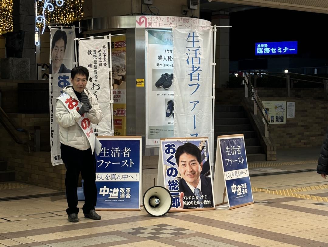 12日間の選挙期間中、奥野候補と中道改革連合の政策を訴え、ご理解が得られるよう努力していく所存です。