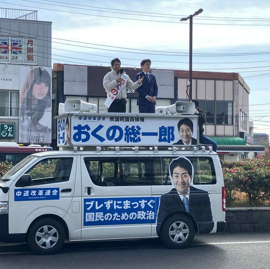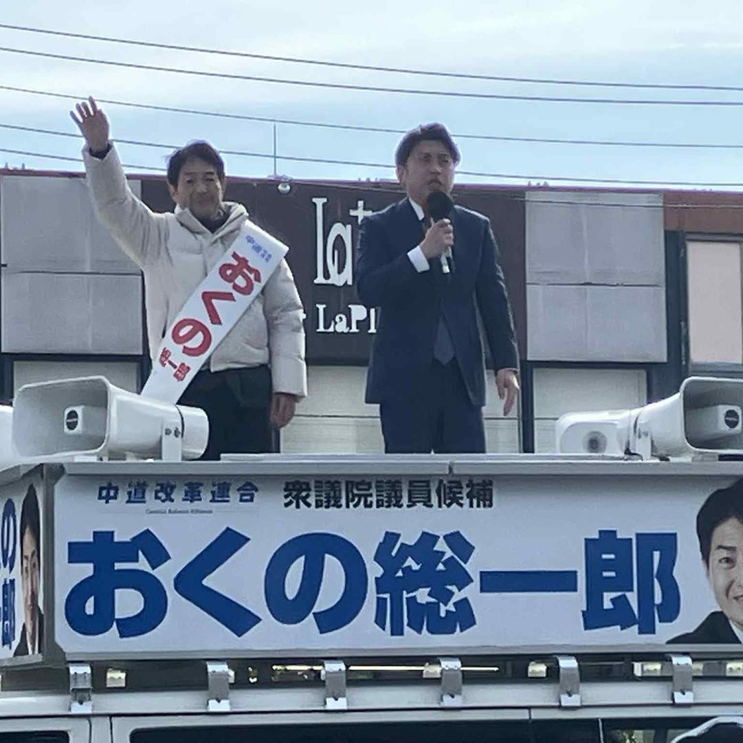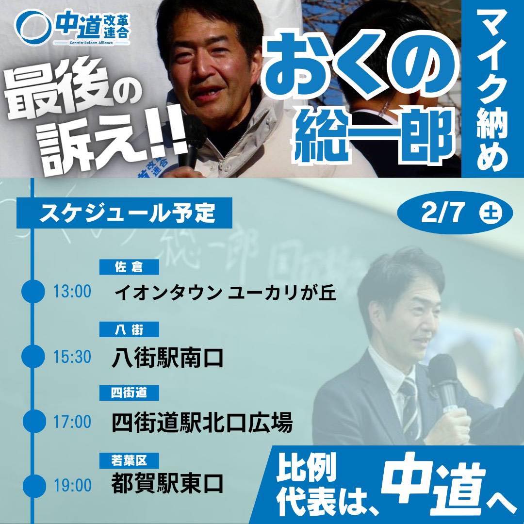 京成佐倉駅で中道改革連合・おくの総一郎候補の必勝を期して、党の政策チラシを配布しました。