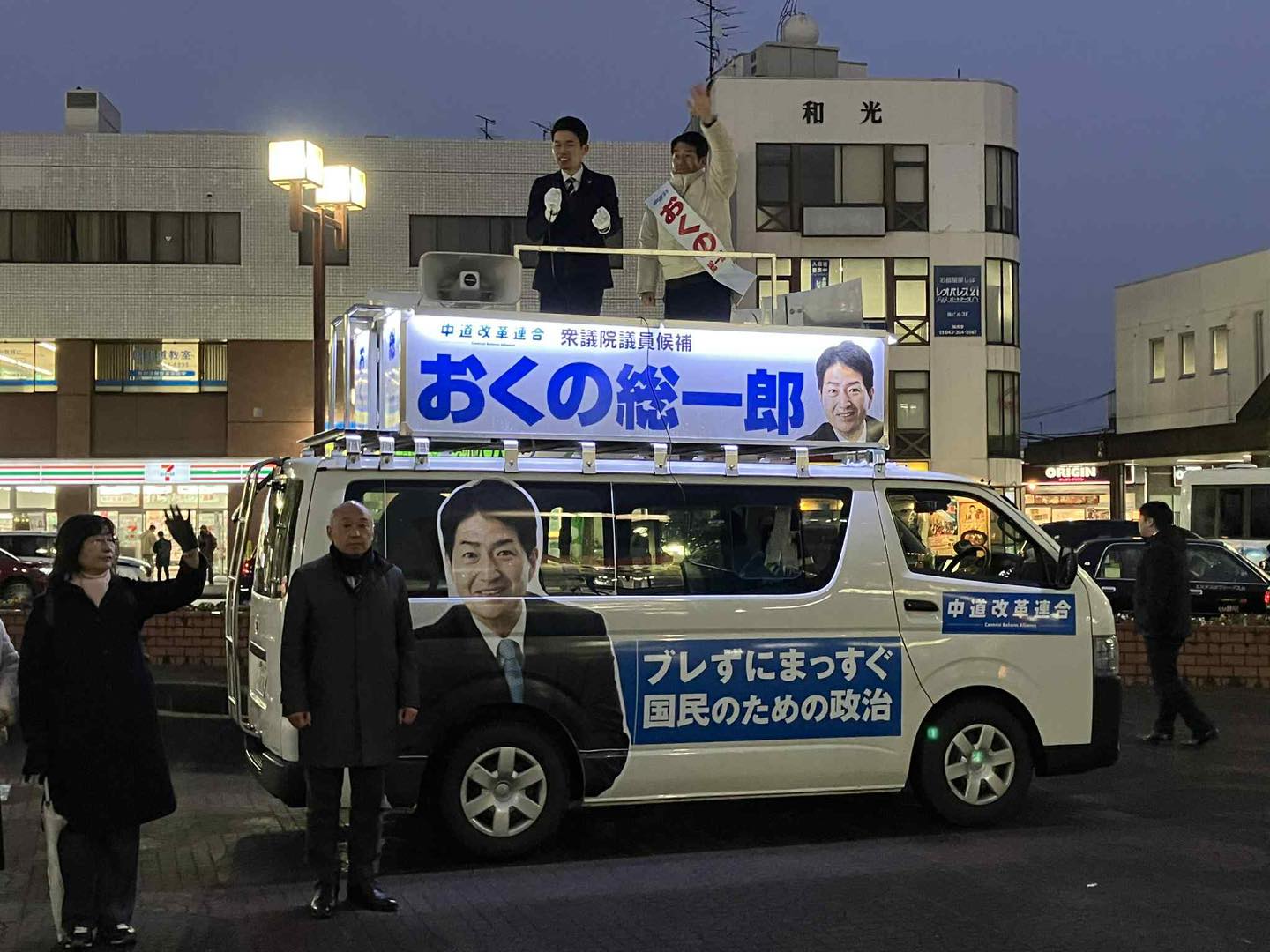 衆院選の12日間、地元9区・中道改革連合の候補者おくの総一郎の選挙活動に奔走しました。