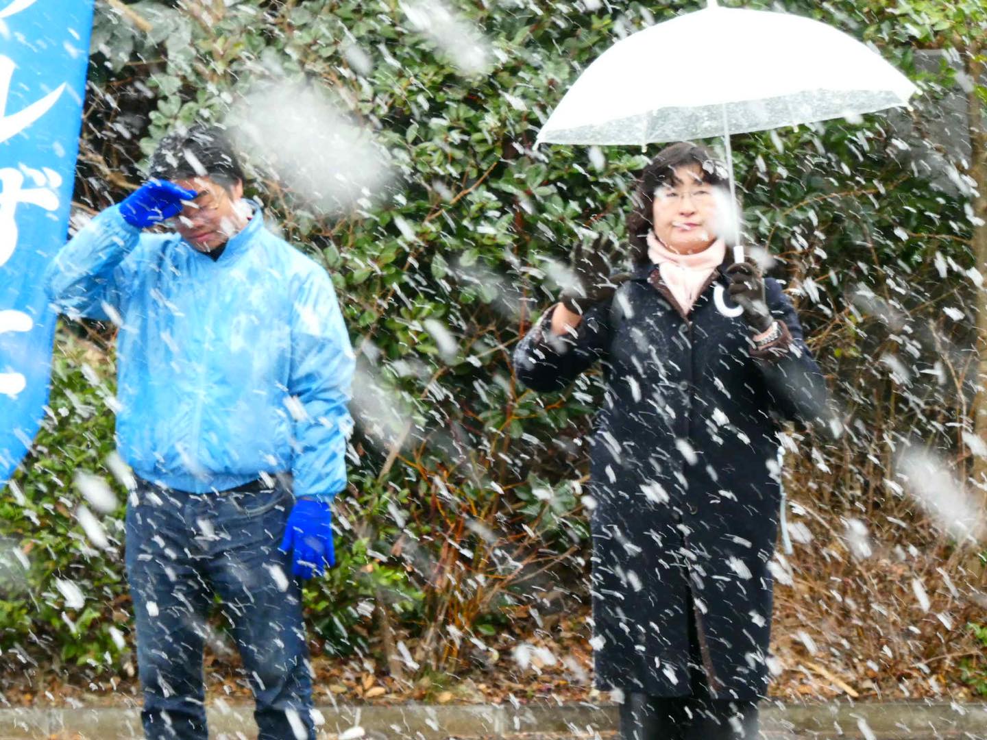 雪がちらつく最終日の今日は、佐倉、八街、四街道、千葉市都賀での最終演説会へ。